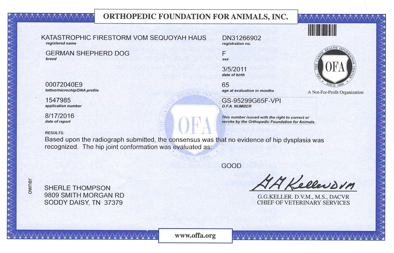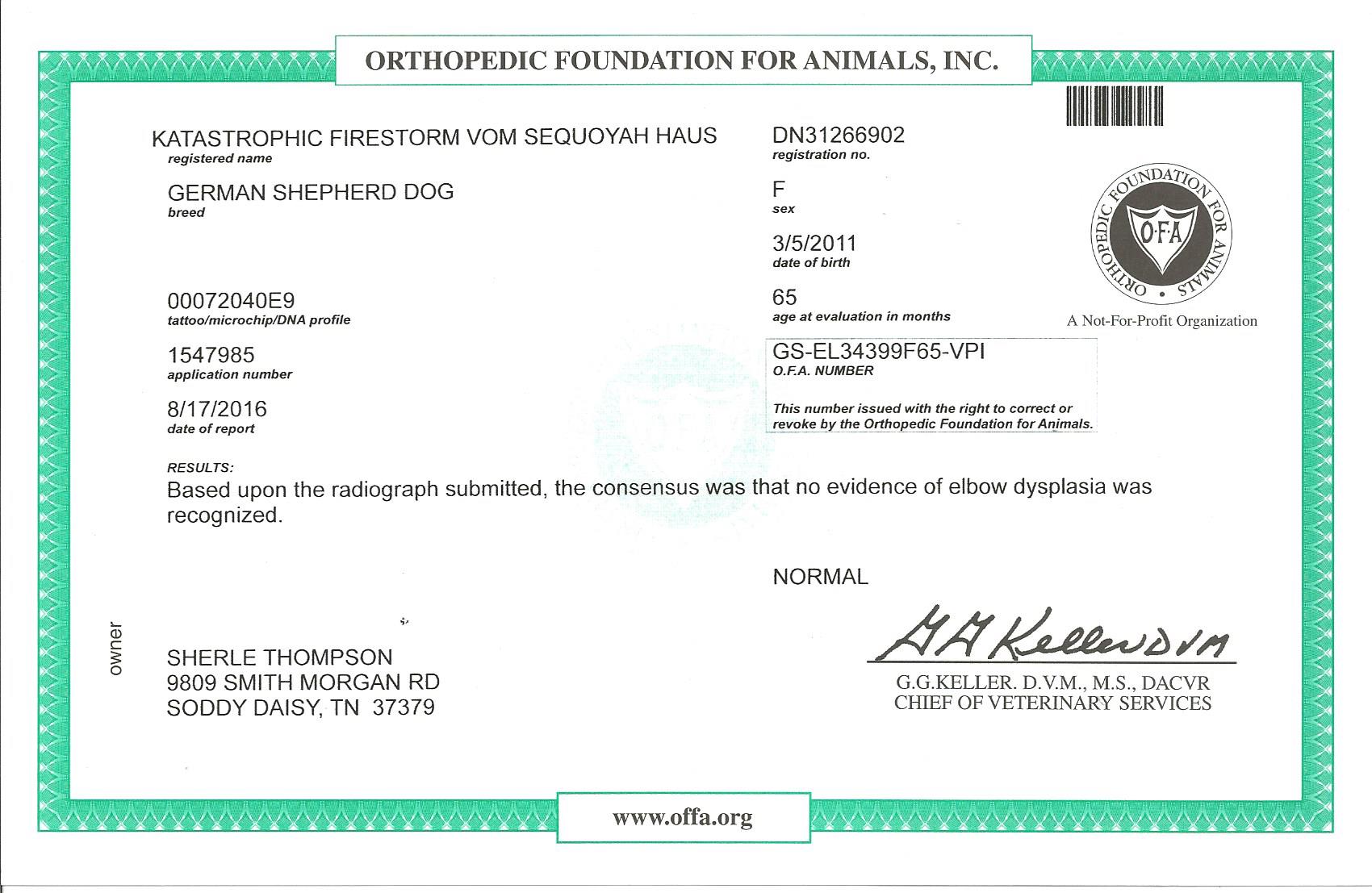 OFA Elbow Scores at 5.5 years of age: