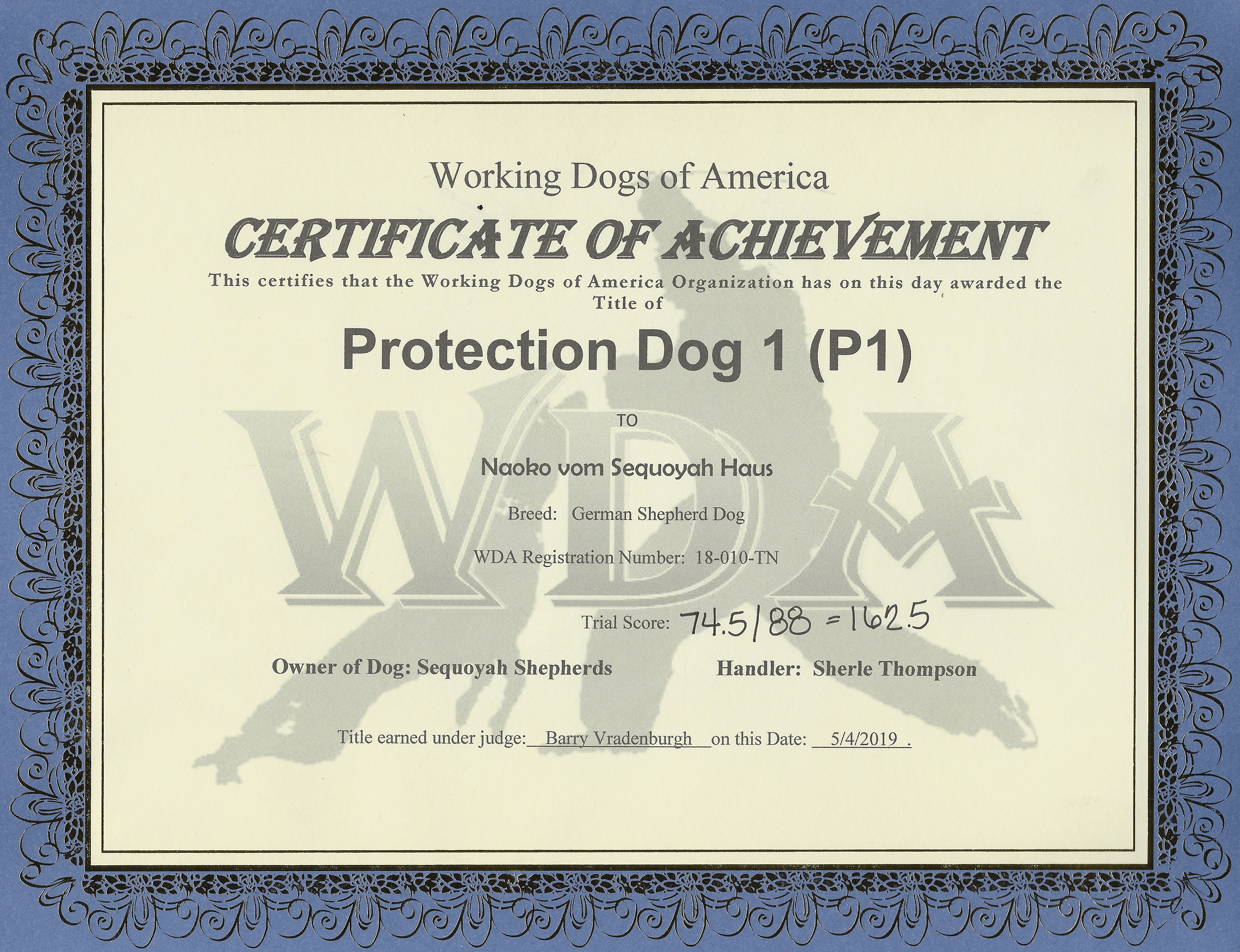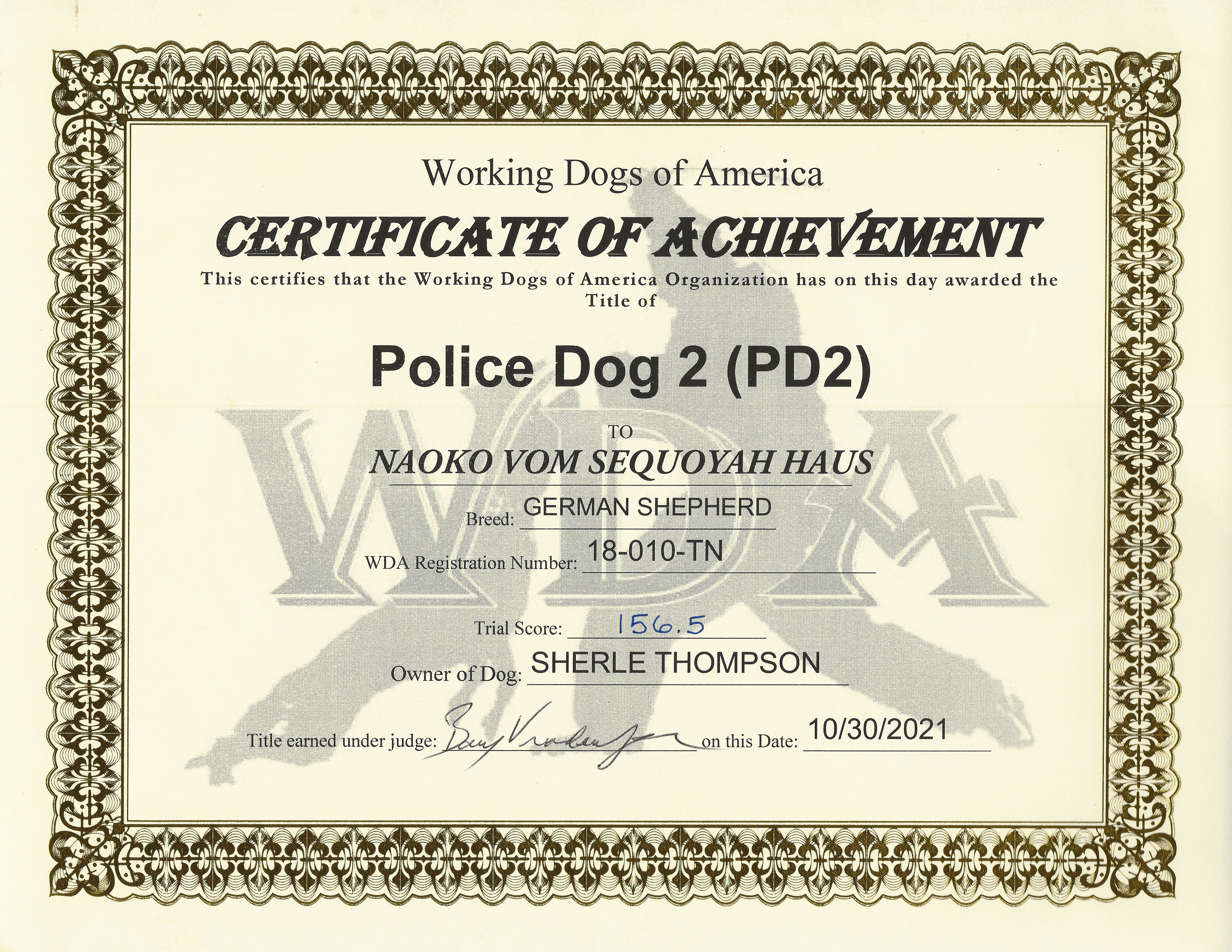 Naoko vom Sequoyah Haus, FO, P1, PD1, PD2