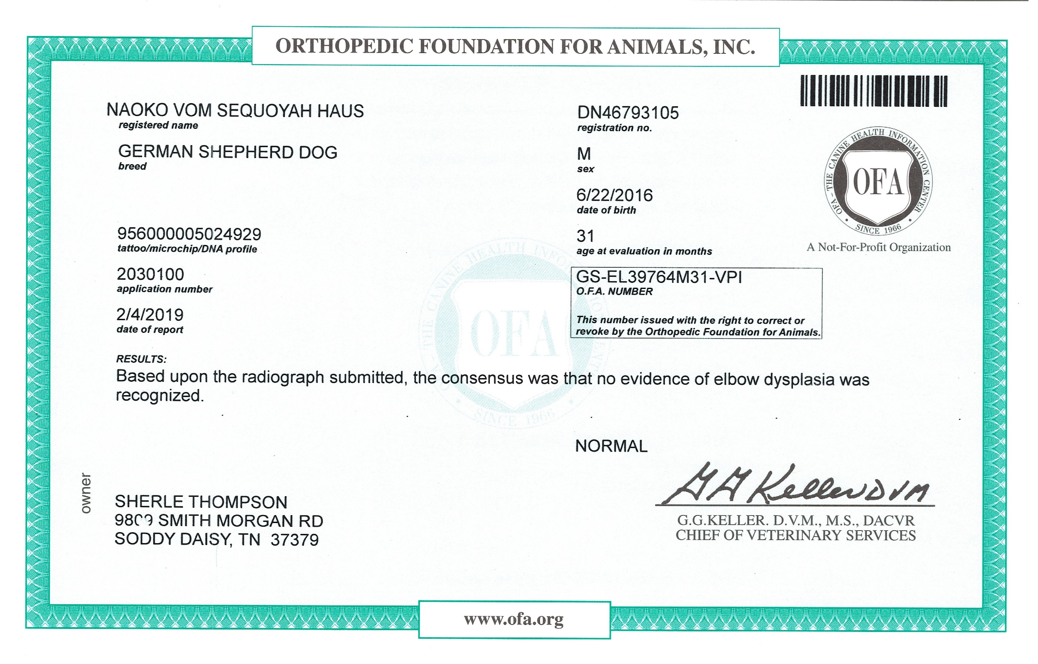 • Son to WildFire vom Sequoyah Haus and Barry von Casa Arado