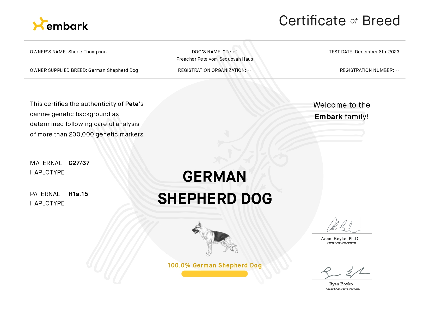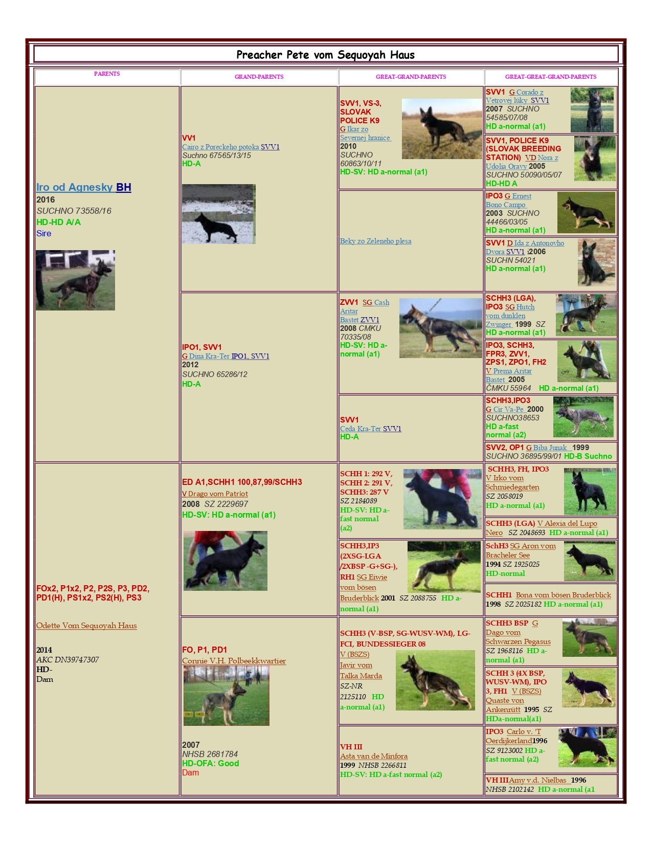 Pete is one of our newest stud dogs. His mother is out of our breeding program. Her lines include Drago vom Patriot (father) and Connie v.h. Polbeekkwartier (mother). His father is Iro od Agnesky