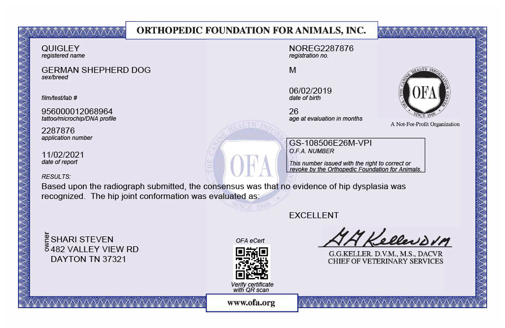 - OFA EXCELLENT hips and Pennhips are top 20% (0.27/0.30)