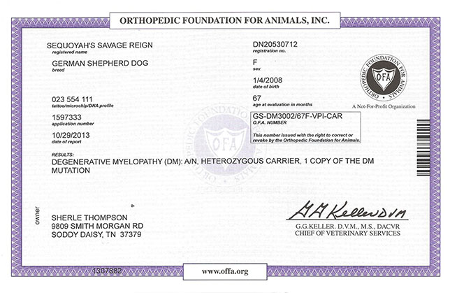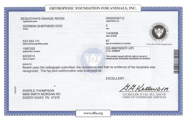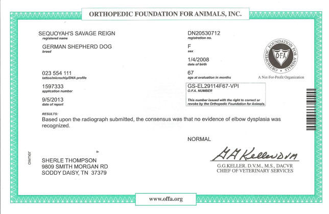 OFA Scores: EXCELLENT AT ALMOST 6 YEARS OLD……