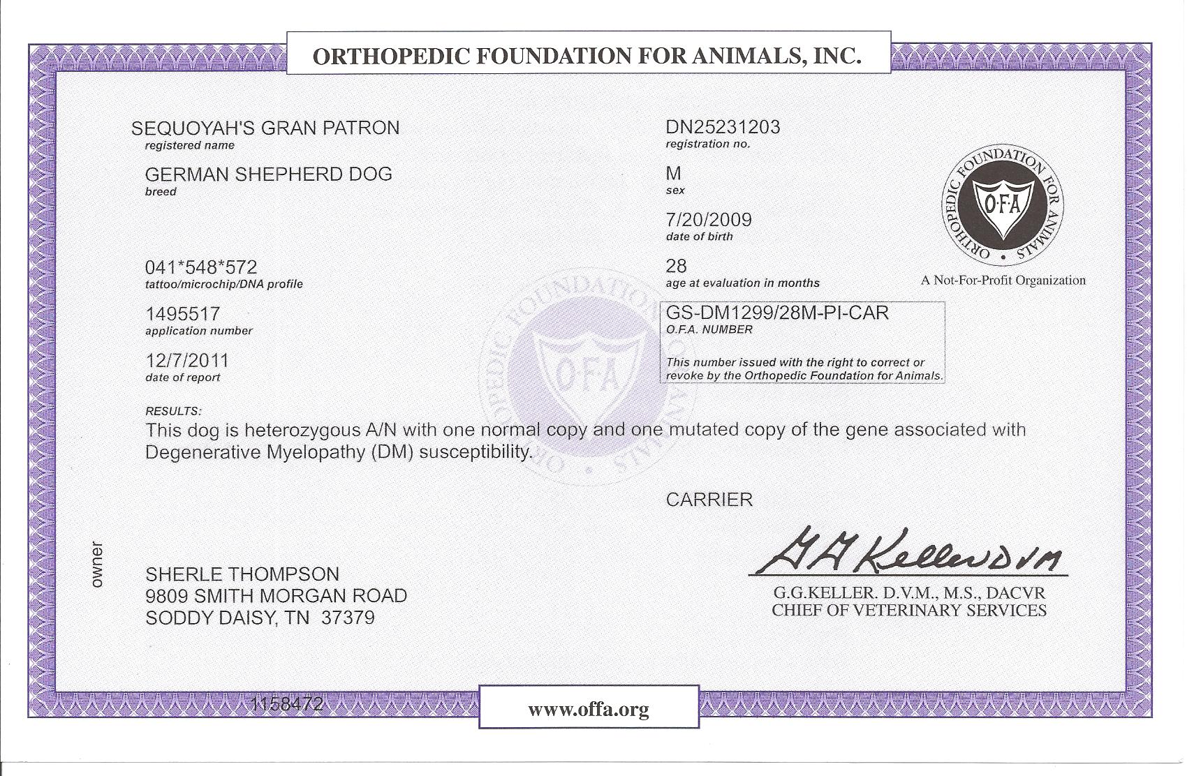OFA Scores: Last done at 5.5 years of age – GOOD!