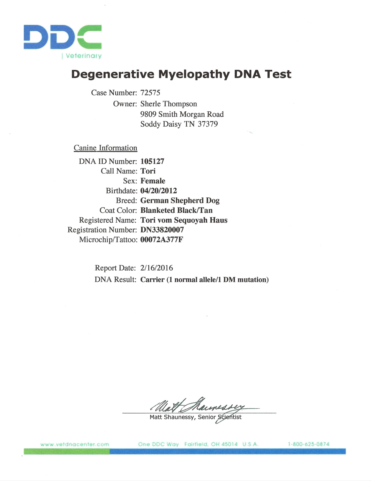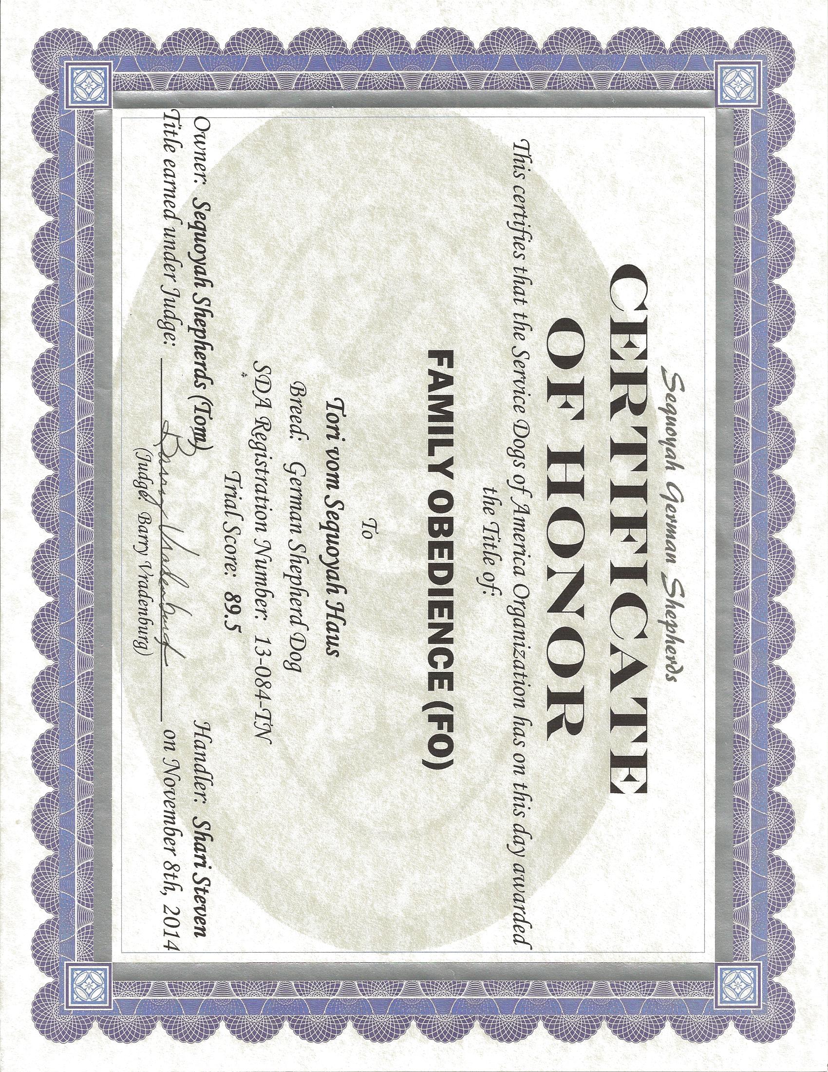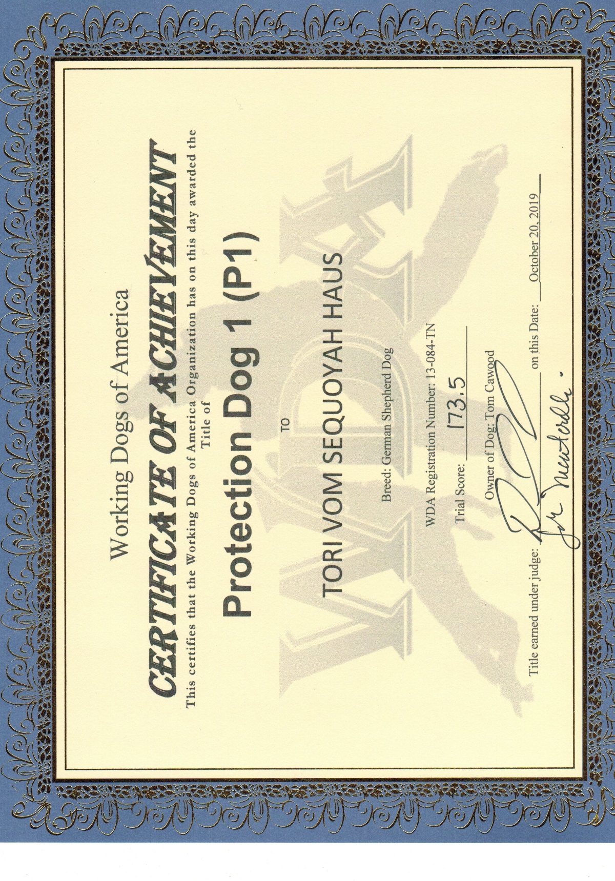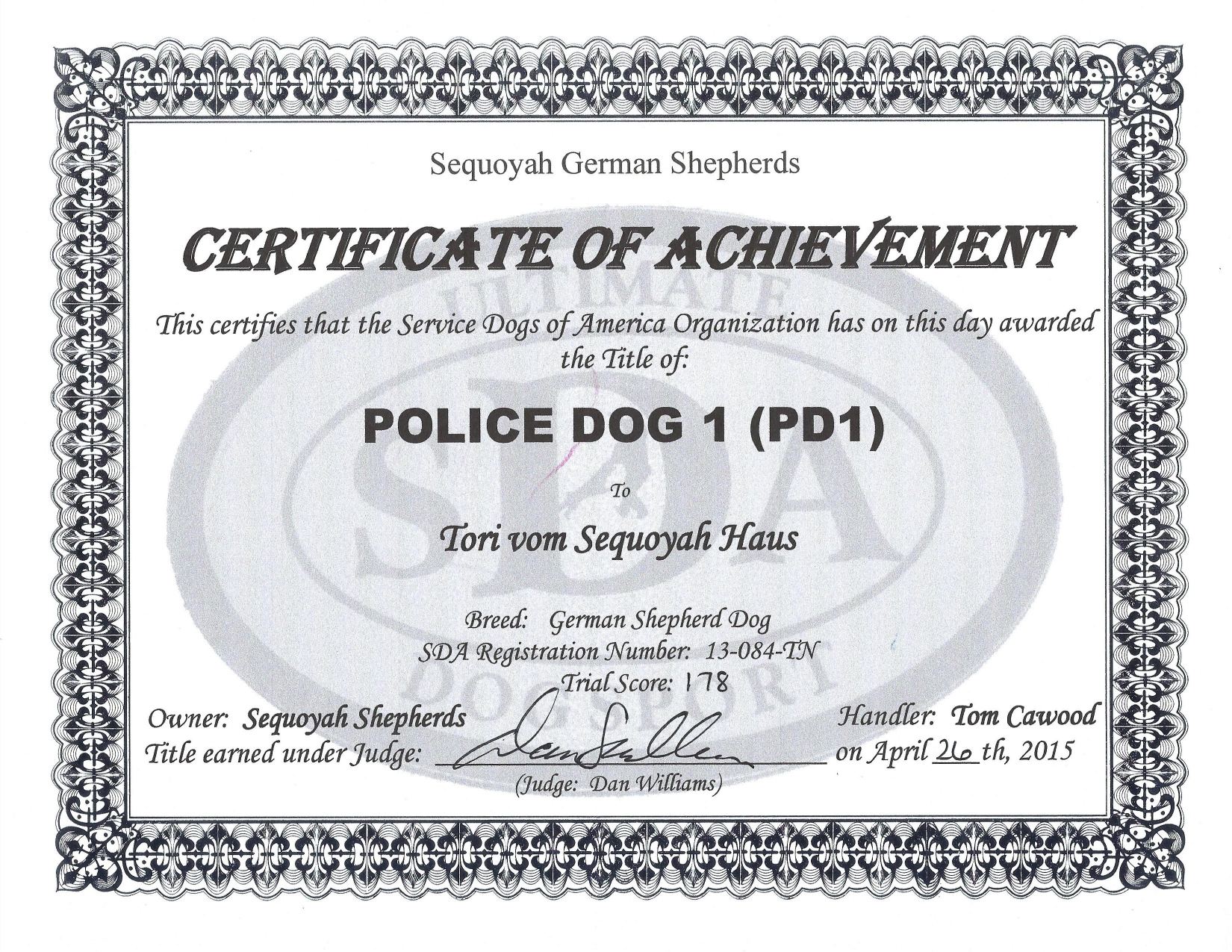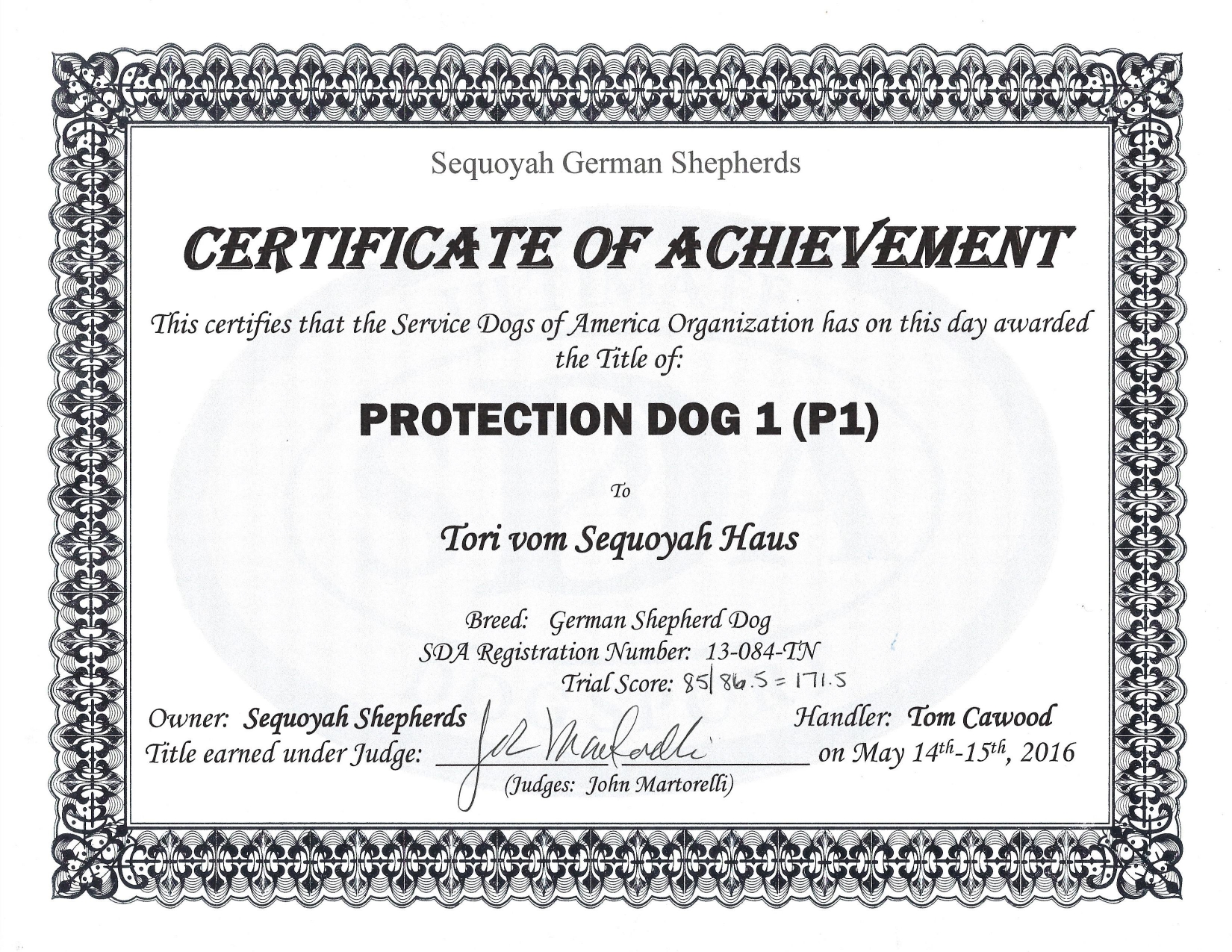 Currently in Training at Sequoyah with Tom Cawood