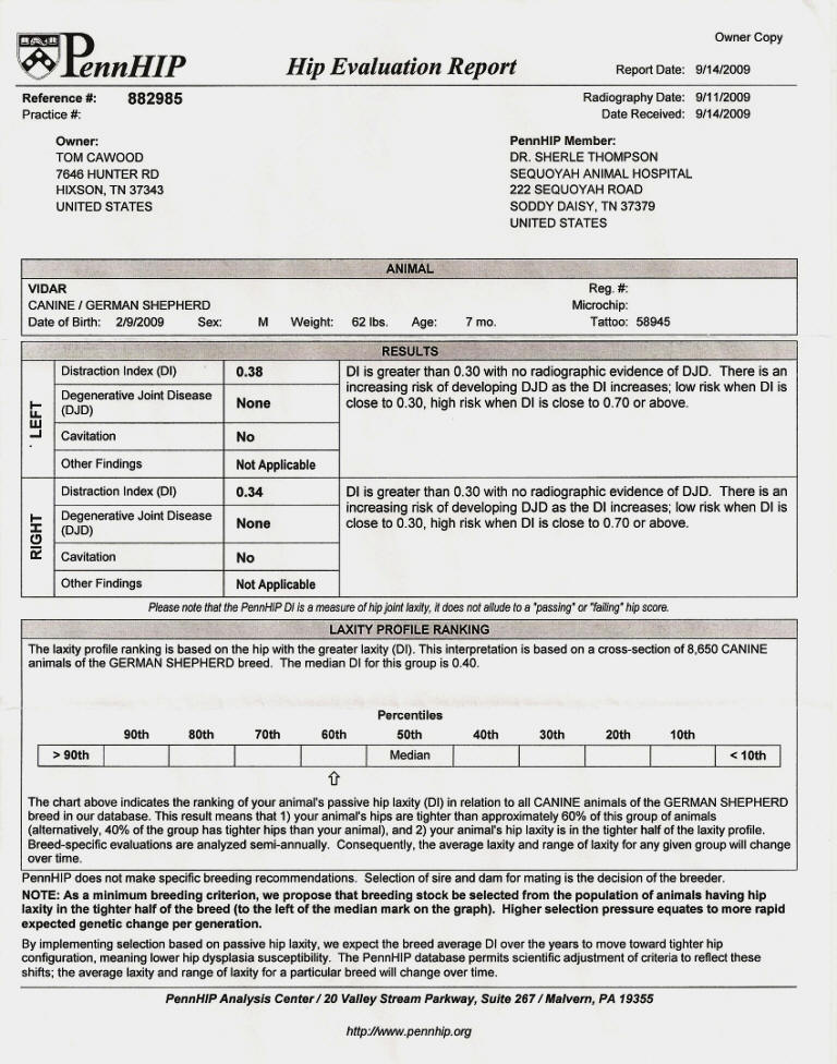 PennHip Scores: Top 40% — (One Hip scores at top 20 %)