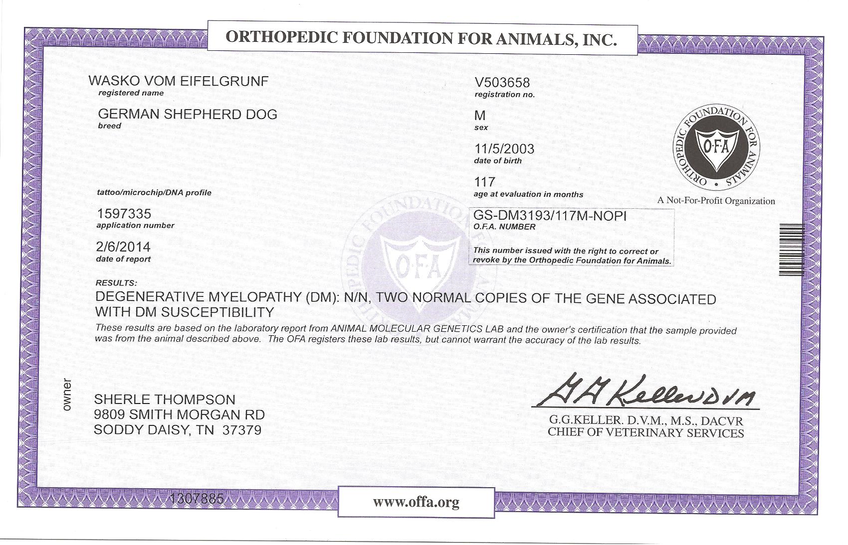 Wasko vom Eifelgrund (FO, P1, SCH III titled)